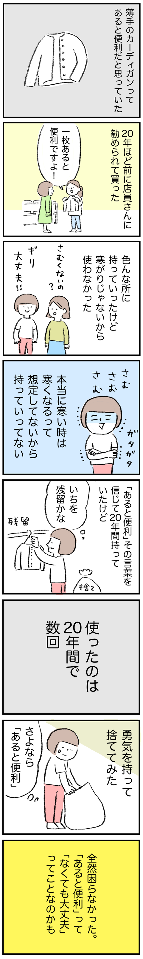 「あると便利」を考える 2021年06月27日 薄手のカーディガンって日本の女子全員が持ってんじゃない?って思う。私は本当にタンスの肥やし。タンスの肥やしって全然タンスを肥さないよね。ほぼ毎日22時更新!(ほぼね‥ほぼ!)ブログ更新のお知らせはラインから登録できるよ! ... 続きを読む