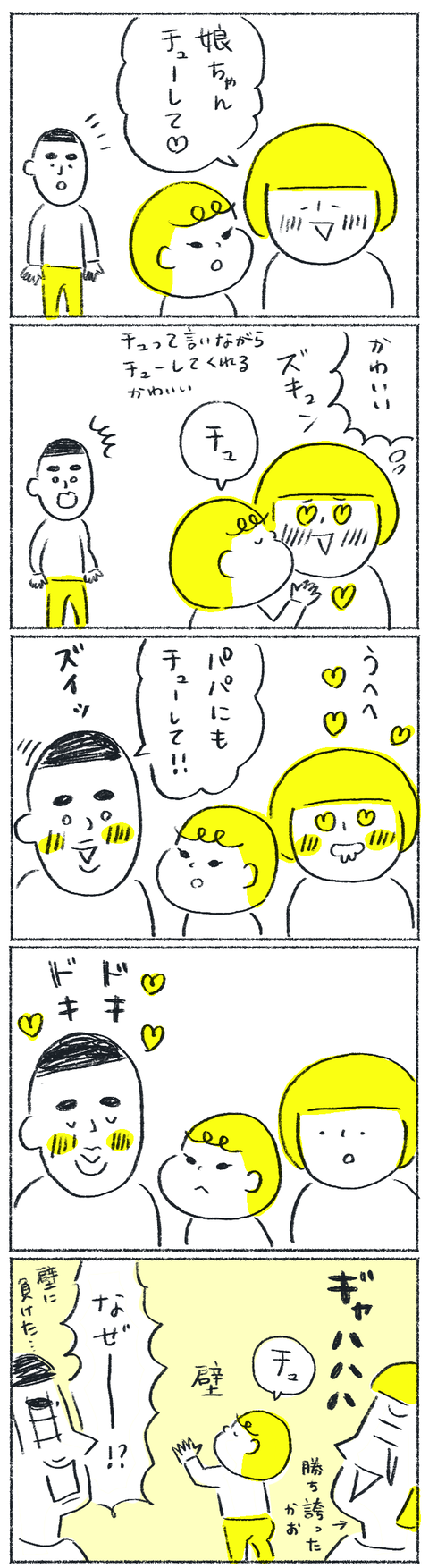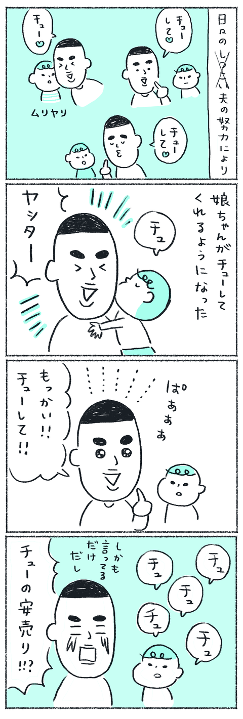 セクハラ回避術 その2 2021年06月10日 とにかく、パパは頑張っています。仕事もあるし娘といる時間が限られるのでママに勝てないのはしょうがないのかもしれないですがとにかくチューしてもらうことが目標のようです。(他に頑張るところある気がする)ほぼ毎日、お昼の12時と夜23時の2回更新します! ... 続きを読む
